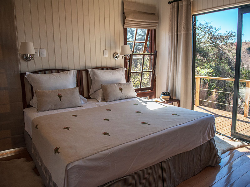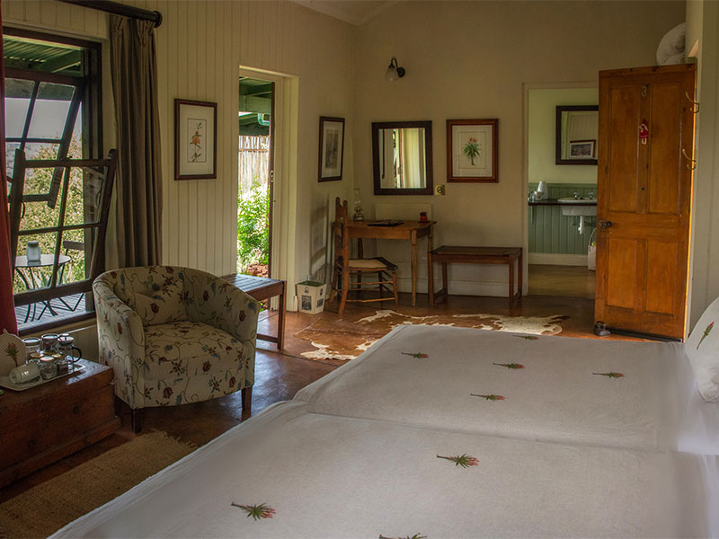 De cottages hebben een koloniale ambiance en zijn elegant ingericht met houten meubilair en Afrikaanse details. Iedere cottage beschikt over een privédek met een schitterend uitzicht op de Spioenkop valei. Met een beetje geluk ziet u vanaf uw dek een paar giraffen of een neushoorn op de vlaktes grazen.