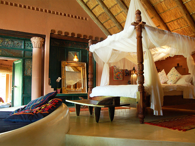De kamers zijn losstaande villa’s met namen als Moon River, Secret Moon, Amber Moon etc. De bouwstijl en inrichting laten duidelijk de Afrikaanse invloeden zien op het leven van de eigenaars, Gaylyn en Maurice, die onder andere Zanzibar, Noord-Afrika en Malawi hebben bezocht.