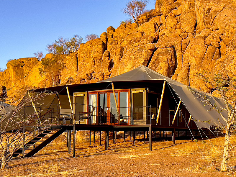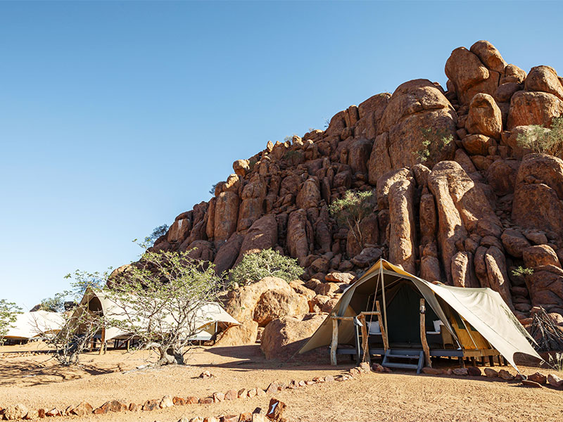 Twyfelfontein Adventure Camp is een sfeervol tentenkamp gelegen tussen granieten rotsformaties in het hart van Damaraland.