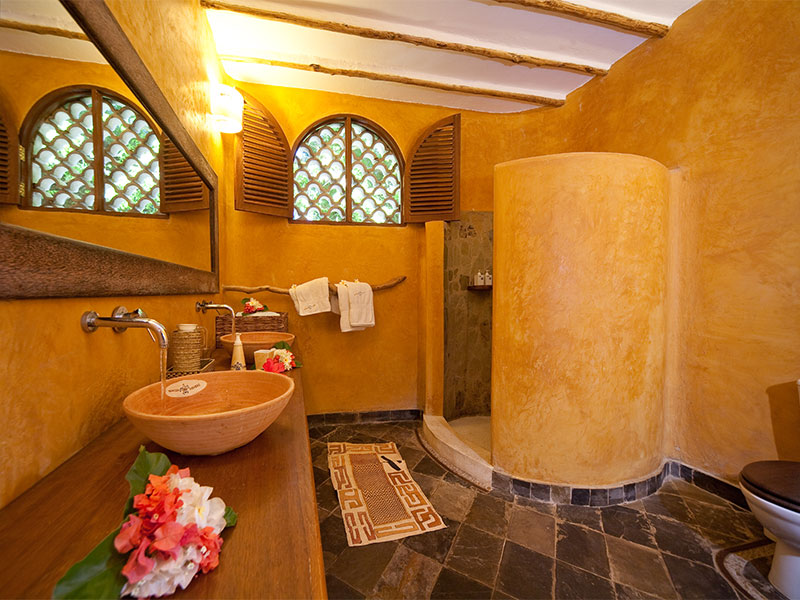 Zowel de cottages als de villa beschikken over airco, een privé veranda met uitzicht op de Indische Oceaan, docking station voor iPod, iPhone en MP3 speler, WiFi en een ruime en-suite badkamer met dubbele wastafel en stenen douche.